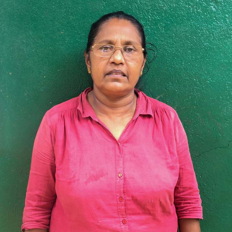 Ik ben een ongehuwde dame van 55 jaar. Ik dien God sinds de dag dat ik Hem aannam als mijn Redder. Momenteel werk ik als leider bij de A.O.G-kerk en studeer ik aan het A.G.B.C Bible College. Ik heb een goede opleiding gehad en heb gewerkt als onderwijzer op een zondagsschool. Onder begeleiding van Pastor Thushara slaag ik erin om heel goed voor de kinderen te zorgen en iIk ben er ook erg enthousiast over dat de kinderen het goed doen op school.